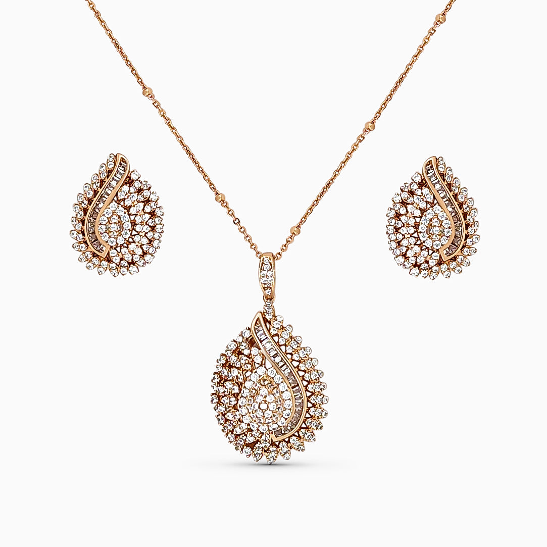 Designer Silver Pendant and matching earring set with Rose Gold plated
