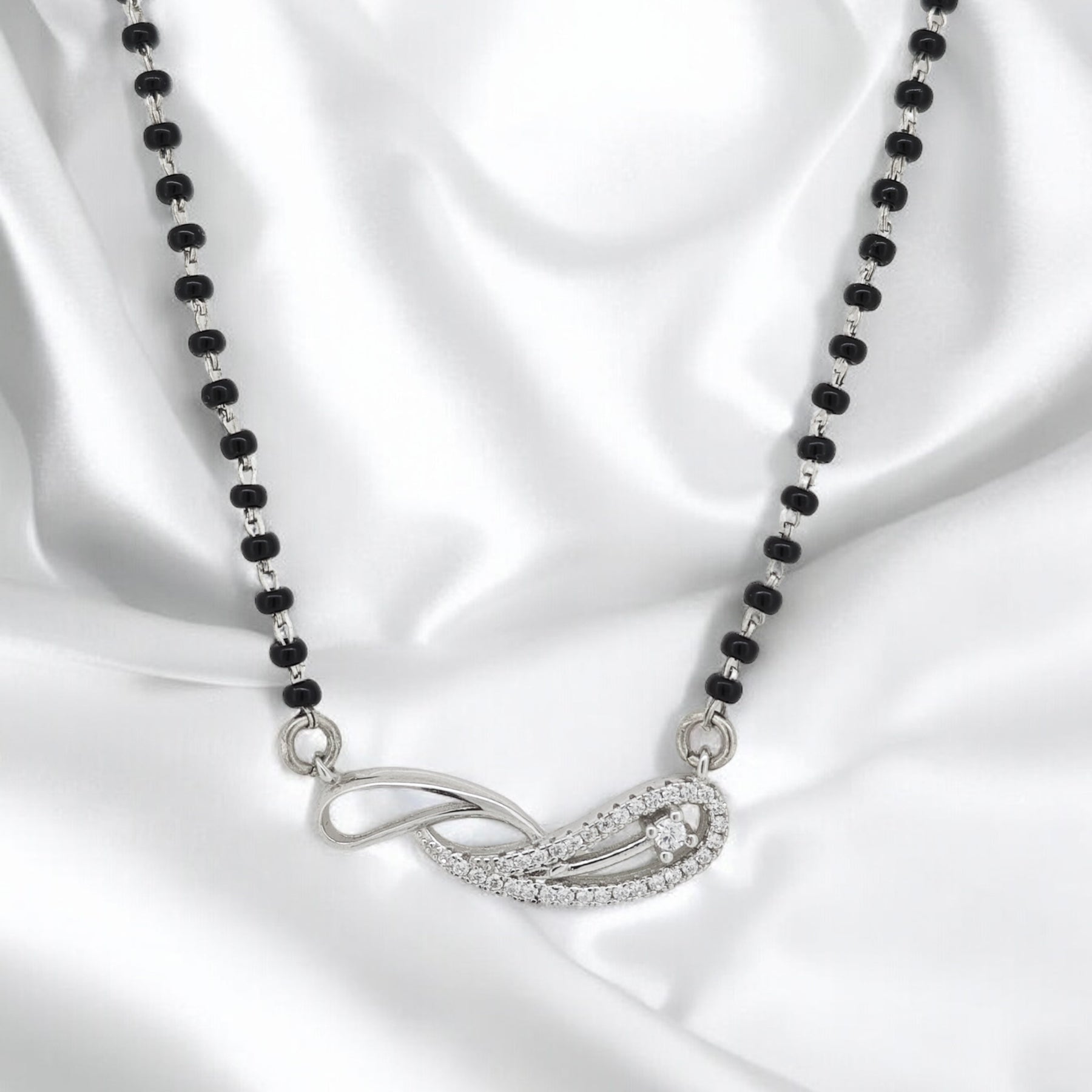 Elevate your traditional look with our Designer silver Mangalasutra! Made from 925 silver, this elegant piece features 3 delicate flower designs. Perfect for daily wear or special occasions, it adds a touch of sophistication and grace to any outfit. Upgrade your jewelry collection today!