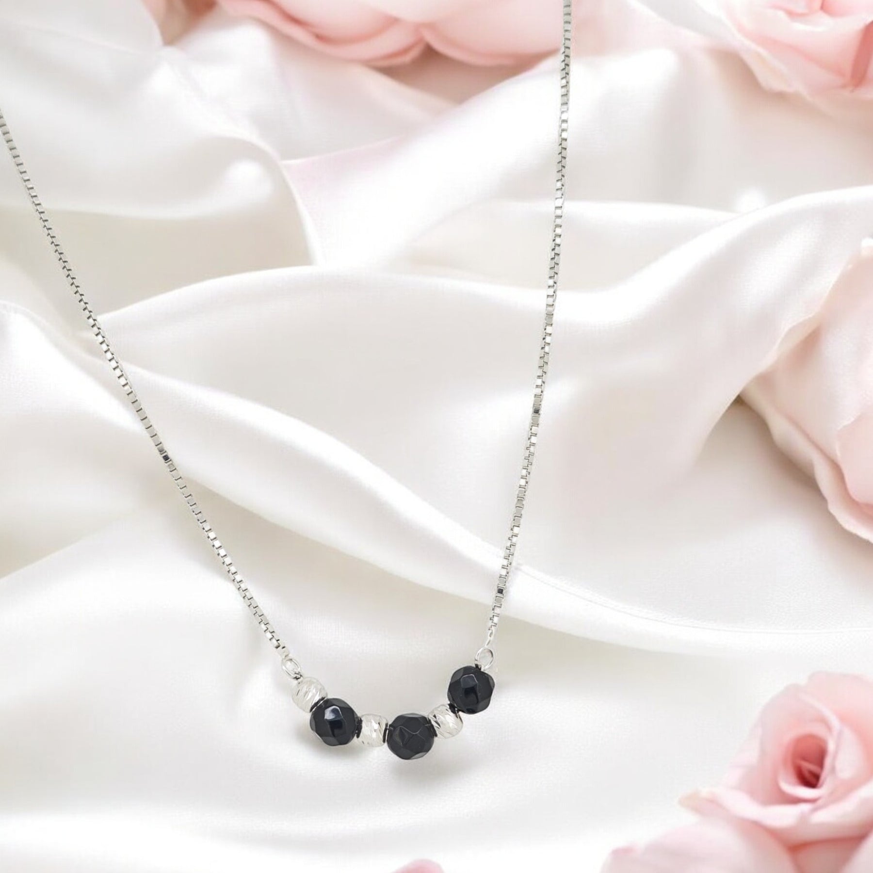Elevate your traditional look with our Designer silver Mangalasutra! Made from 925 silver, this elegant piece features 3 delicate flower designs. Perfect for daily wear or special occasions, it adds a touch of sophistication and grace to any outfit. Upgrade your jewelry collection today!
