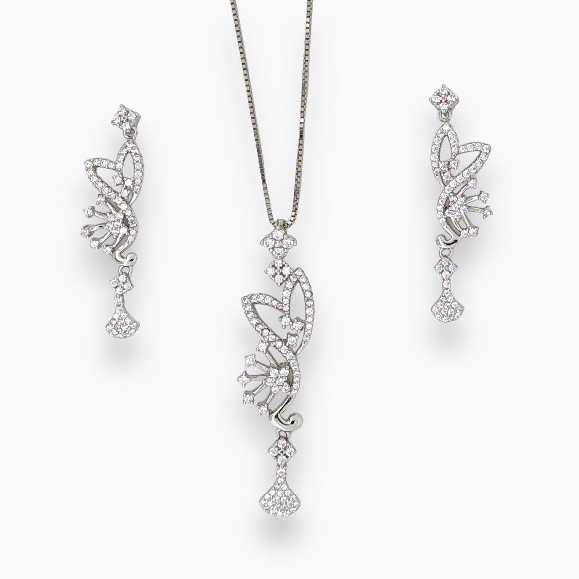 Elevate your style with our asymmetric designer silver pendant and matching earring set. Made with pure 925 silver and a rhodium finish, it's perfect for adding a touch of elegance to any party outfit. Plus, it makes for a stunning gift for your loved ones.