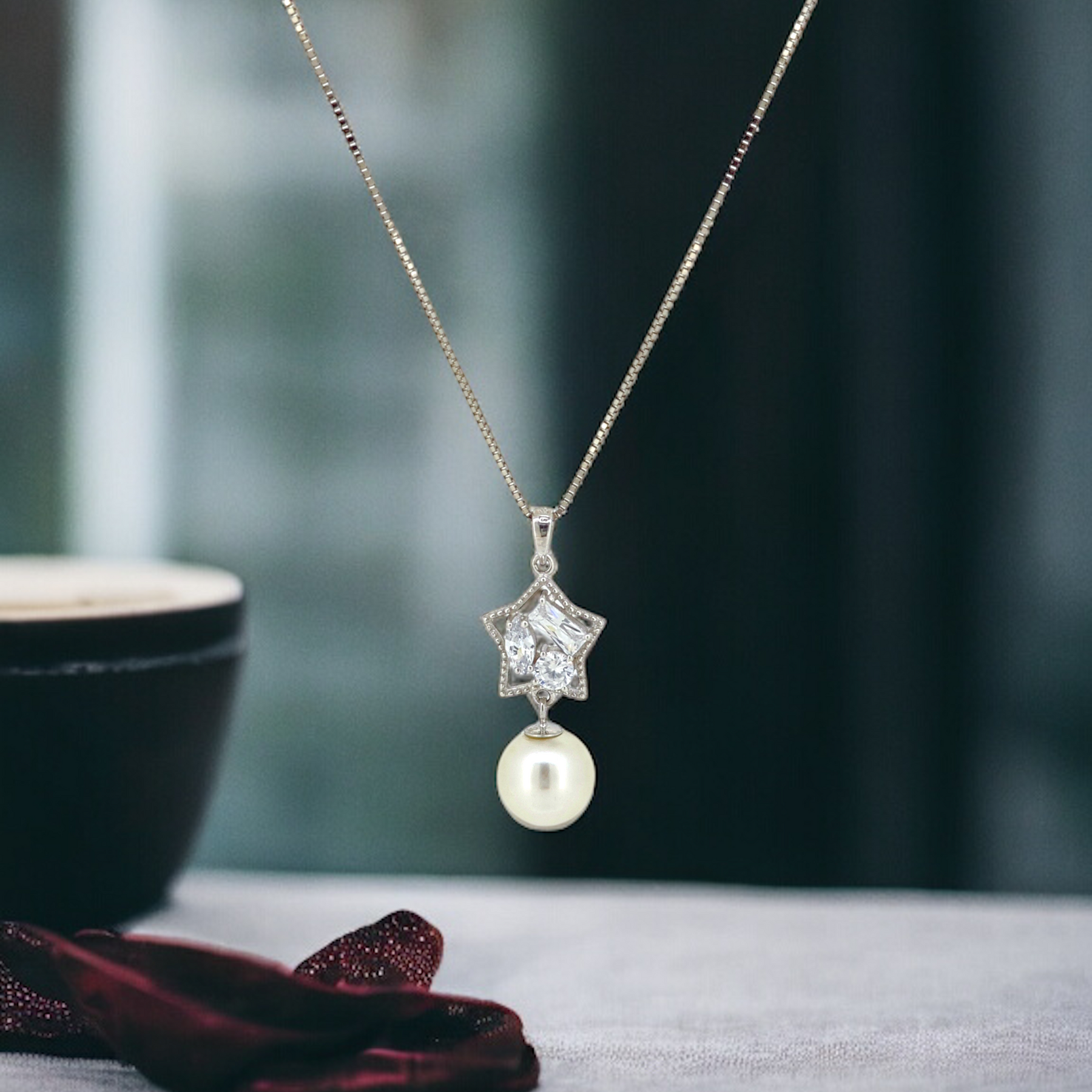 Pearls are a classic symbol of elegance and sophistication, and now you can add a touch of starry charm with our 925 silver pendant. Featuring a real, freshwater pearl in a unique star-shaped design, this pendant is sure to bring out your inner star. Perfect for any classic pearl collection. Shine bright with this stunning pendant and chain.